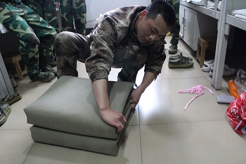 到达基地后,在各连长的安排下,同学们立马开始整理寝室内务,并领取了期待已久的军训服装。随后,各连长也为同学们讲解了本次军训的管理制度,内务规范条例等注意事项。伴随着军训第一课——“叠被子”的进行,本次军训正式拉开序幕。
