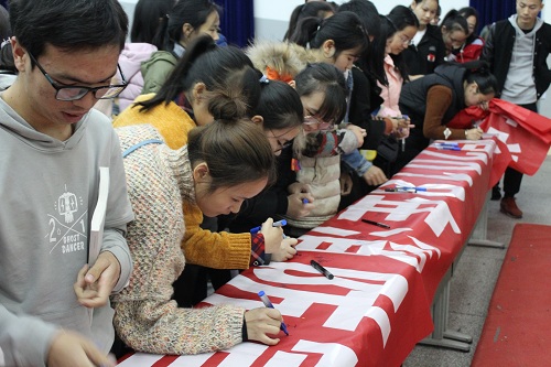 会上,体育部部长苟旭为宣传月活动主要内容和具体活动做了详细的介绍、员工代表魏高伟同学精彩发言后,师生一同观看消防宣传的视频,视频中介绍近几年发生在身边的消防案例,以及发生火灾时的注意事项和如何自救等方法。最后,李骏老师总结发言,他对认识火灾的严重危害性、学会如何避免火灾的发生、发生火灾改如何自救、宿舍用电该如何保证安全等方法做了详细说明,告诫同学们一定要提高警惕,注意安全。会后,同学们均在横幅上签字、留影。会议圆满结束。