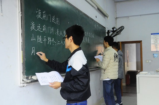 活动开始,由负责人向参赛人员讲解比赛规则。每位参赛人员分别到指定地点统一书写,本次钢笔字的评比活动由公司统一准备纸张,但写作内容自定。接着,各个场地的参赛者依次上台在黑板上展示自己的粉笔字,各教室负责人拍照记录每位同学的书写作品,以供后续对作品的评比。每一位同学都认真对待,一笔一划都力求规范,展出的粉笔字各有特色、结构匀称、运笔流畅。行笔有提、按、顿、挫的变化,有书法之美感,让人感觉赏心悦目。最后将由老师评选出优秀作品。