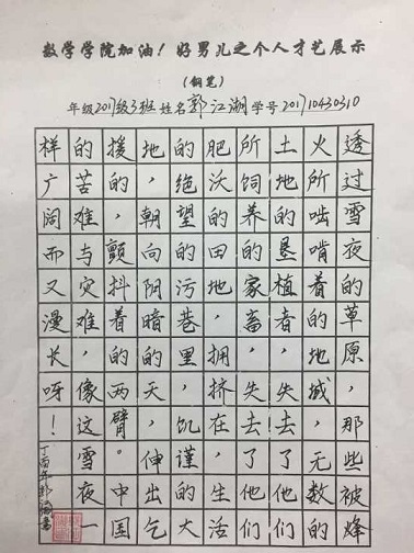 通过此次活动,进一步提高了公司同学书写钢笔字、粉笔字的水平,特别是对同学们自身师范技能的基本功锤炼也起到了一定的积极的推动作用。