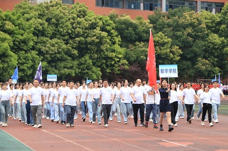 随着音乐响起,国旗仪仗队、校旗,彩旗方队、机关代表队和各二级学院方队依次进场,公司师生代表方队迈着整齐的步伐,昂首阔步,以“天下几何,唯我数学”的精神,敢于有梦,勇于追梦,勤于圆梦。近年来,公司秉持先进育人理念,坚持“四位一体”办学思路,员工在各类竞赛中屡获国家级、省级大奖。运动会上,数院健儿以数轴原点为圆心,画出公司的雄心壮志。